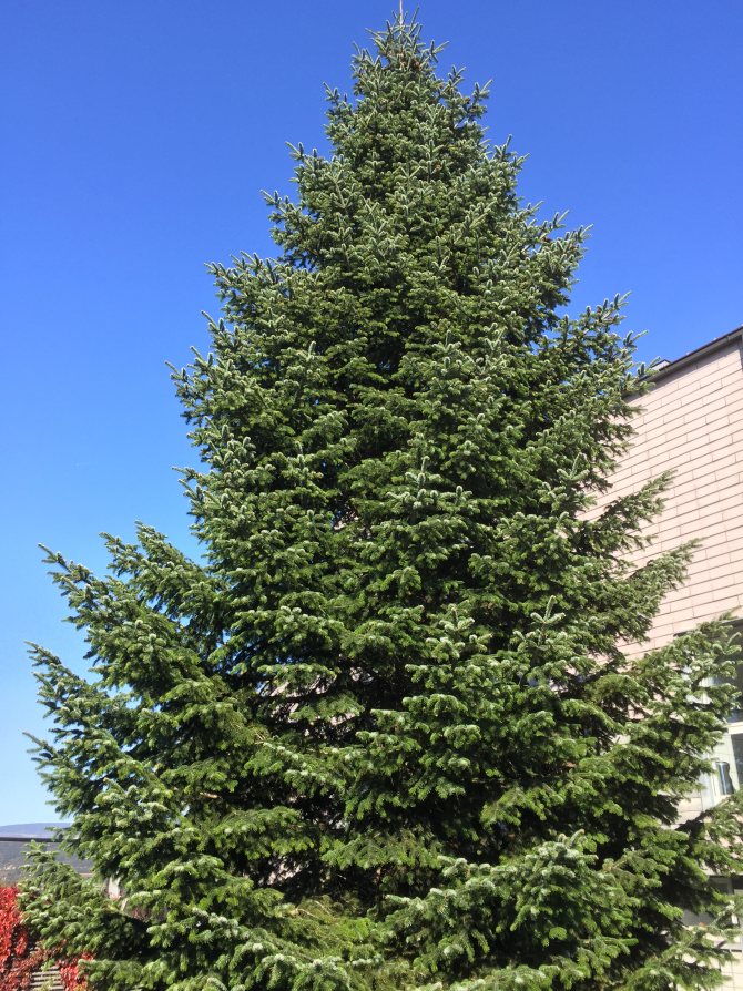 | Форма кроны: | Правильная ширококоническая, нижние ветви спускаются до земли. |